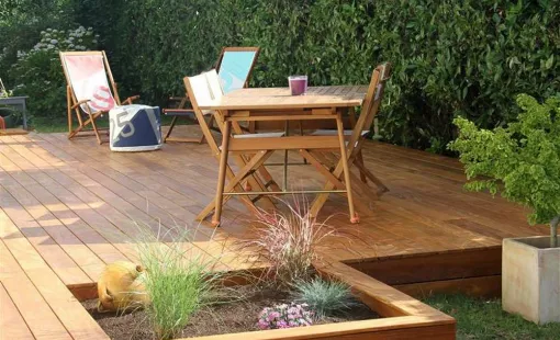 - Pose de terrasse en bois naturel ou en bois exotique.